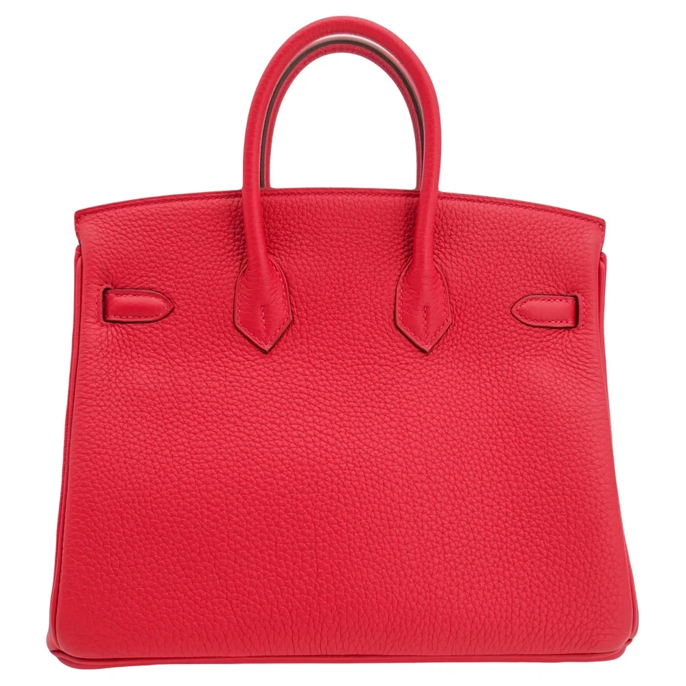 This Hermès style Birkin 25 Verso features Rouge Casaque Togo leather with a bold red reverse side. Palladium hardware complements the 25cm reversible design. Compact yet fits essentials like cards and keys. Pair with neutrals for a pop of fiery contrast. Lightweight and perfect for trendsetters. Two looks in one masterpiece.