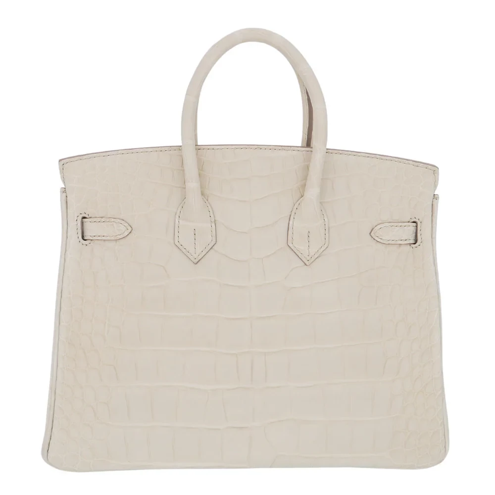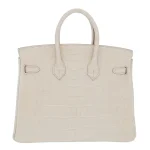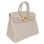 This Hermès Replica Birkin 25 features Beton matte alligator leather in soft grey. Gold hardware adds warmth to the cool tone. The 25cm size keeps its structured shape perfectly. Matte finish resists scratches and stains. Perfect with monochrome minimalist outfits. Modern luxury for contemporary tastes. Quiet sophistication that speaks volumes.