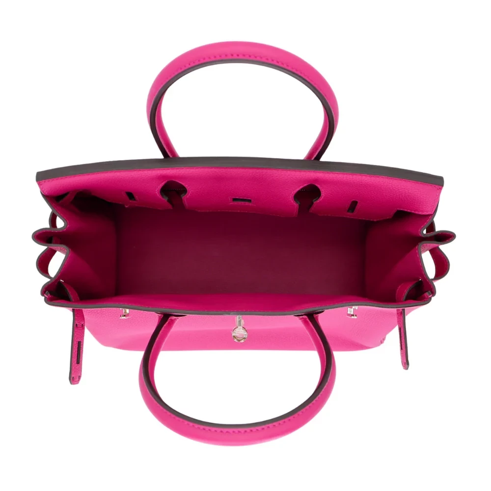 This Hermès like Birkin 30 glows in deep pink Togo leather. The silver palladium hardware keeps the look modern. The 30cm size is spacious enough for work or travel. The rich pink color pairs with neutrals or prints. Scratch resistant leather stays looking new. A feminine bag with a bold personality. Perfect for making a stylish entrance.