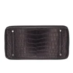 This Hermès style Birkin 35 features Black matte Niloticus crocodile leather for stealthy sophistication. Palladium hardware adds cool contrast to the oversized 35cm silhouette. Matte crocodile resists fingerprints and scratches. Roomy enough for travel gear or work essentials. Pair with all black outfits for monochrome drama. Lightweight despite its size. Edgy luxury for modern rebels.