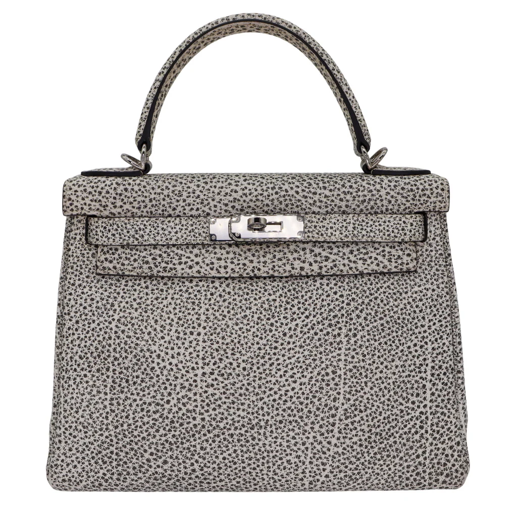 1:1 Hermès Replica – Kelly 28 Retourne Dalmatian Buffalo Palladium HW