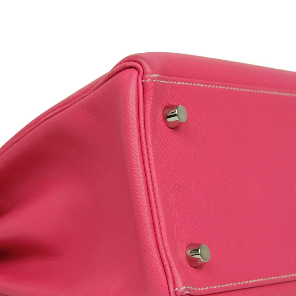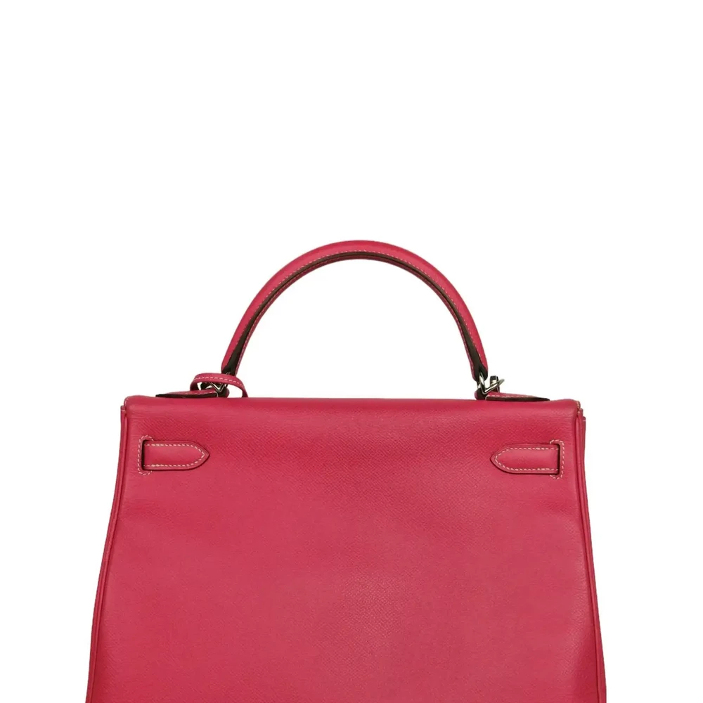 This Hermès inspired Kelly 32 features Tosca Candy Epsom leather for playful, candy pink charm. Palladium hardware complements the relaxed, slouchy shape. The 32cm size holds laptops, water bottles, and daily essentials. Epsom leather resists wear and stays polished. Style with pastels or metallics for whimsical flair. Ideal for parties, travel, or cheerful errands. Sweetness meets sophistication.