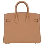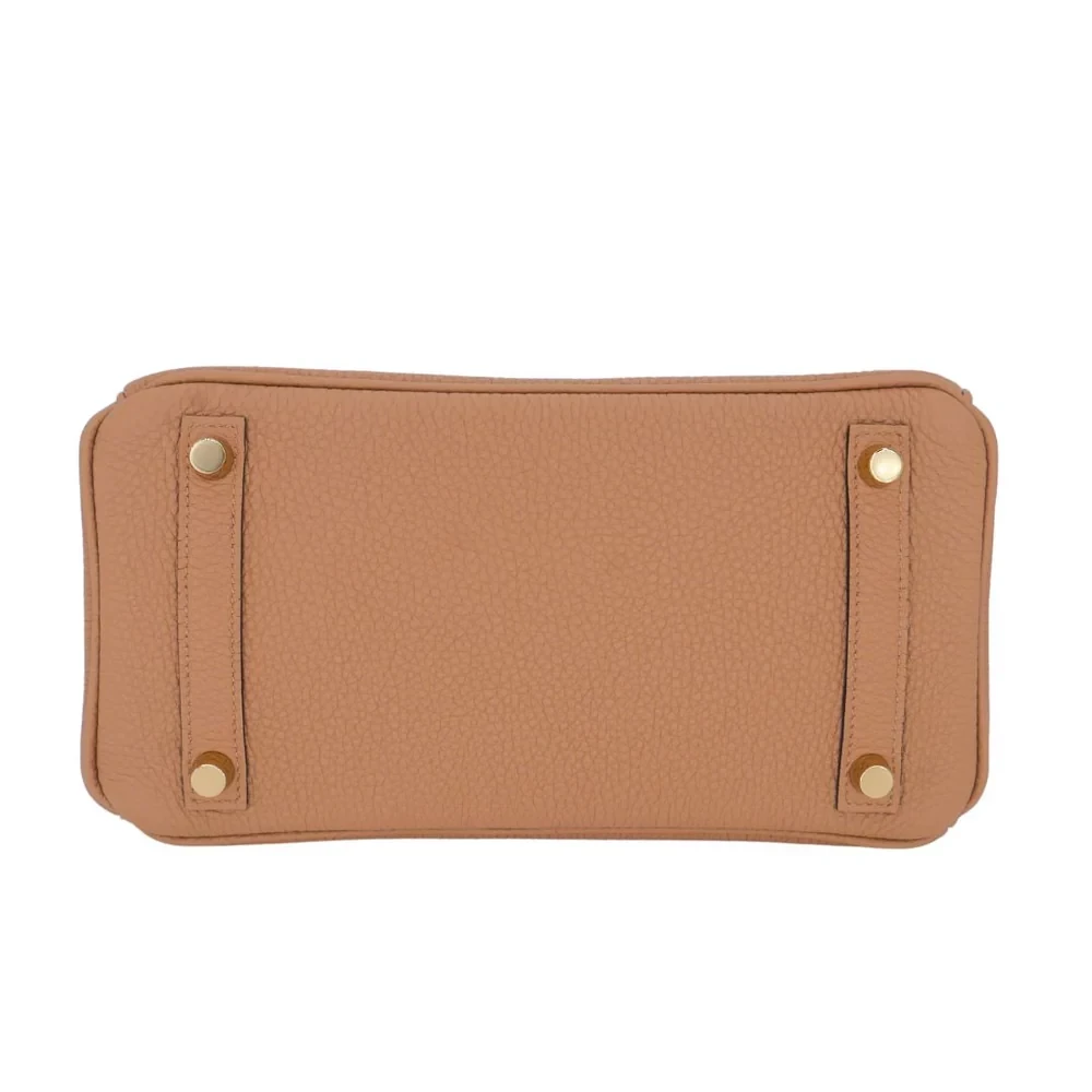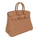 This Hermès Dupe Birkin 25 features warm Chai Togo leather with natural grain. Gold hardware enhances the caramel tones. The 25cm size is perfect for daily essentials. Togo leather develops beautiful patina over time. Pairs perfectly with autumn wardrobes. Your perfect transitional season companion. Cozy luxury that never goes out of style.