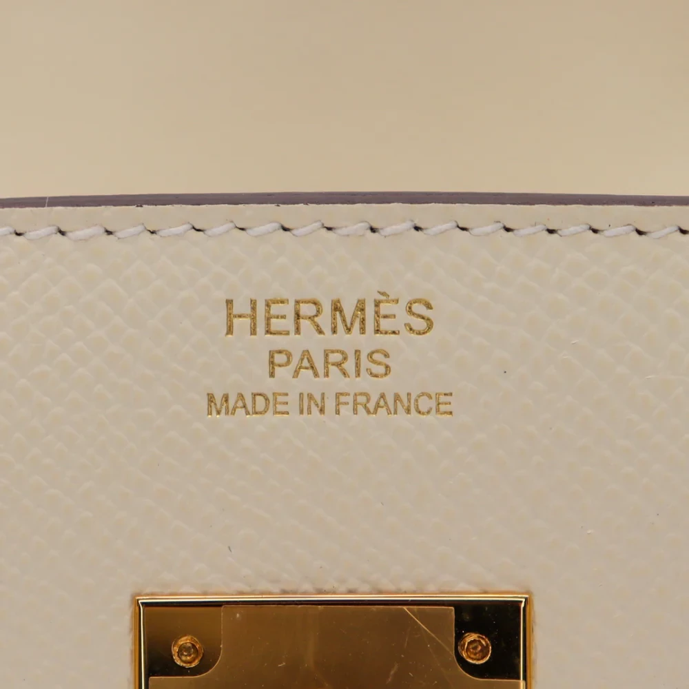 This Hermès style Birkin 30 in Nata uses creamy white Epsom leather. The gold hardware warms up the soft, neutral color. The 30cm Sellier design is crisp and polished for formal events. It holds your essentials while keeping a sleek silhouette. Pair it with pastels or bold colors for contrast. A bag that’s as elegant as a pearl necklace. Clean, chic, and totally timeless.