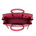 This Hermès style Birkin 30 shines in Bois de Rose Fjord leather, a dusky rose pink shade. Gold hardware adds warmth to the 30cm structured design. Durable Fjord leather resists scratches and water. Roomy enough for work essentials or travel gear. Pair with neutrals or pastels for soft elegance. Lightweight and office to weekend versatile. Romantic luxury redefined.