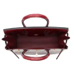 This Hermès style Birkin 30 in Bordeaux glows with deep red crocodile leather. The gold hardware adds a rich, luxurious finish. The 30cm size holds your tablet, makeup, and more with ease. The glossy leather catches the light like a gemstone. Pair it with black outfits for a dramatic effect. It’s a red carpet worthy bag for real life moments. Feel like a star without the celebrity budget.