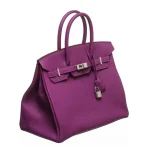 This Hermès inspired Birkin 35 dazzles in deep Anemone Togo leather. Palladium hardware sharpens the bag’s casual, slouchy silhouette. The 35cm size holds gym clothes, laptops, or travel kits. Togo leather masks scuffs and stays lightweight. Pair with grey tones or silver jewelry for urban edge. Versatile for work, weekends, or city exploration. Rich color, effortless function.