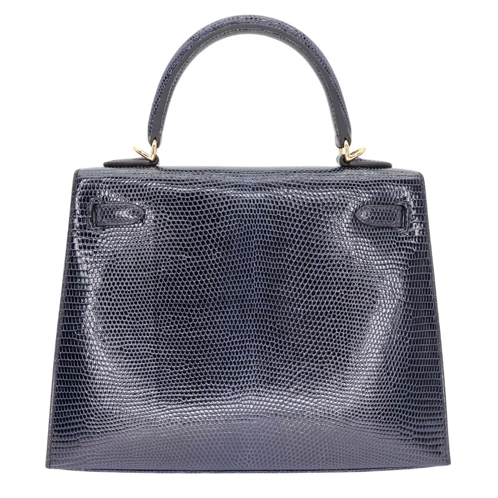 Artisan-Grade Hermès Dupes – Kelly 25 Sellier Bleu Indigo Shiny Lizard Gold HW