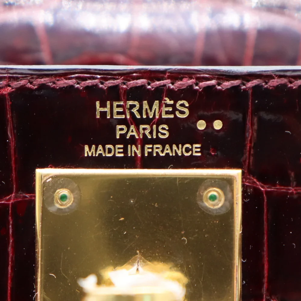 Artisan-Grade Hermès Dupes – Kelly 28 Sellier Bordeaux Shiny Niloticus Gold HW