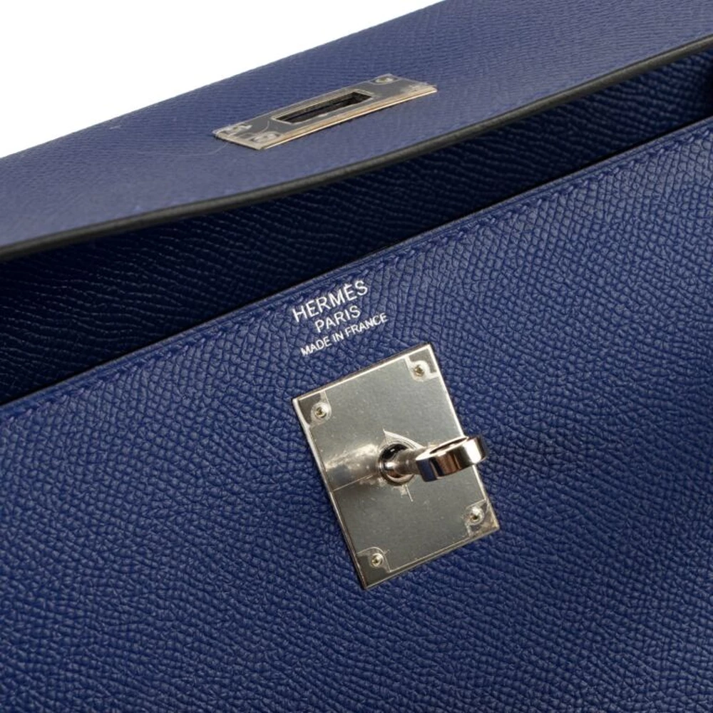 This Hermès inspired Kelly 32 radiates in Bleu Electrique Clemence leather for electric blue energy. Palladium hardware accents the relaxed, slouchy design. The 32cm spacious interior fits tech gadgets, books, and essentials. Clemence leather ages gracefully and resists wear. Style with black or white for bold contrast. Perfect for concerts, travel, or statement errands. Voltage in every stitch.