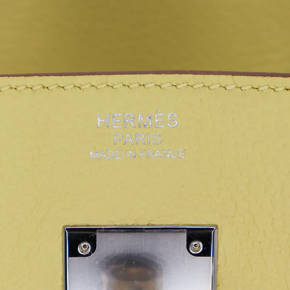 This Hermès inspired Birkin 30 in Jaune Poussin uses sunny yellow Togo leather. The silver palladium hardware keeps the look fresh and fun. The 30cm size is great for beach trips or errands. The cheerful color brightens even the gloomiest day. Carry it by hand or over your shoulder for easy style. It’s a burst of joy in bag form. Perfect for spreading positivity!