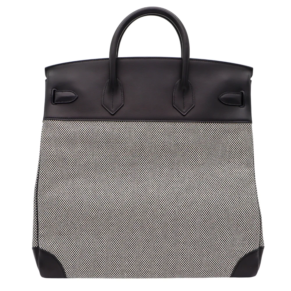 This Hermès style HAC 40 combines Black Toile canvas and Swift leather. Palladium hardware adds utilitarian chic. The 40cm size organizes work essentials neatly. Durable materials withstand daily commutes. Perfect for urban professionals seeking casual elegance. Rugged luxury for practical lifestyles.
