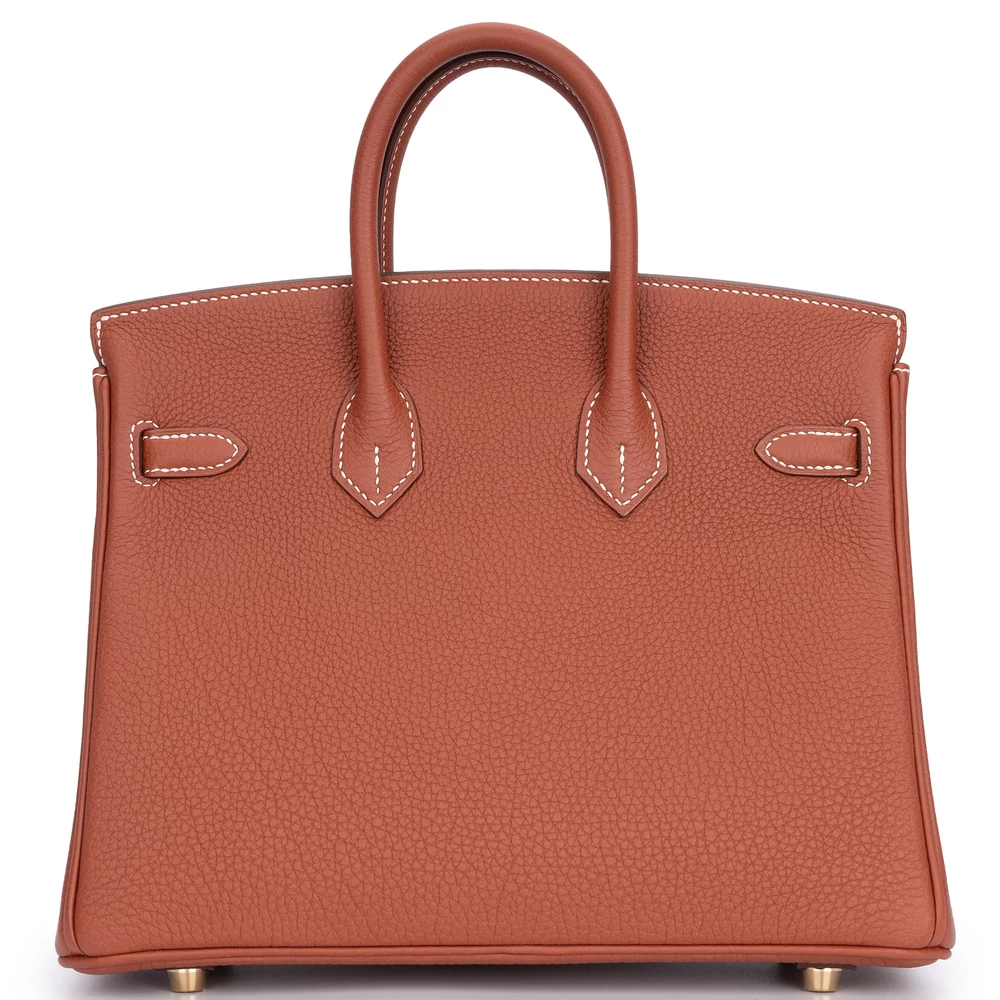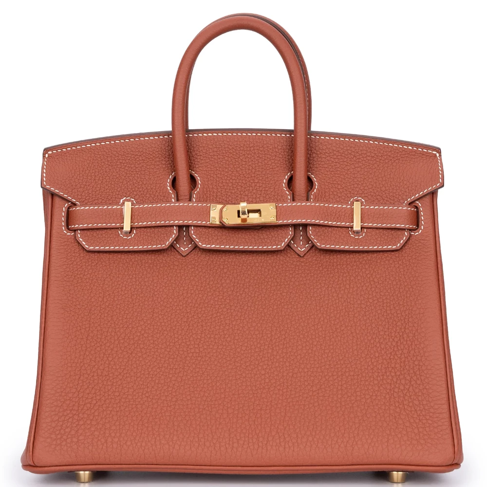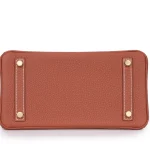 This Hermès style Birkin 25 uses Sienne Togo leather in rich caramel. Palladium hardware cools the warm autumnal tone. The 25cm size fits phone, wallet, and makeup. Soft leather develops a beautiful patina. Pair with neutrals or jewel tones. Perfect for transitional seasons. Cozy luxury for everyday elegance.