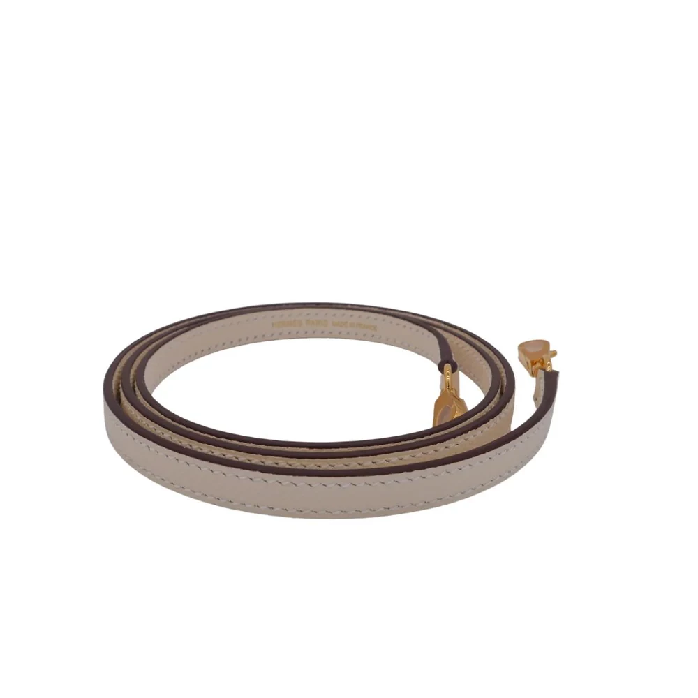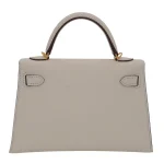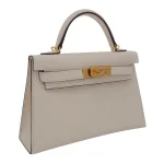 This Hermès style Kelly Mini features Nata Epsom in creamy white. Gold hardware adds warmth to the neutral tone. The 20cm sellier style stays structured and pristine. Durable leather resists stains and scuffs. Perfect with summer dresses or casual jeans. Your go to bag for weddings or daytime events. Clean luxury for timeless moments.