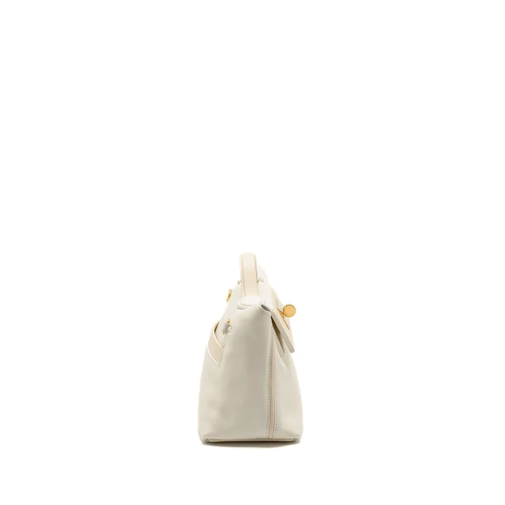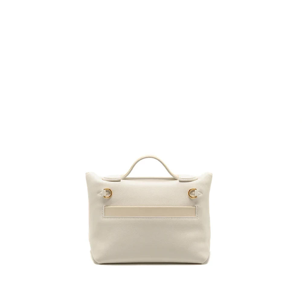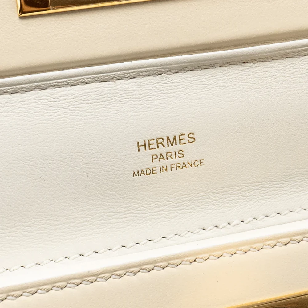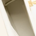 This Hermès Mini 24/24 21 Bag in Evercolor Swift leather and Blanc Nata with gold hardware offers a chic, minimalistic design. The pristine white leather combined with the polished gold hardware creates a timeless, sophisticated look. This compact bag is perfect for those who appreciate luxury and versatility, making it ideal for both casual and formal settings.
