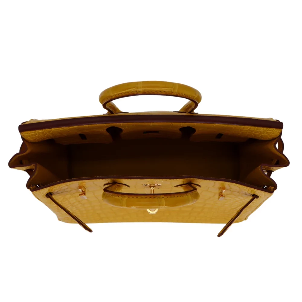 This Hermès like Birkin 25 in Ambre uses warm tan matte alligator leather. The gold hardware adds a sunny glow to the neutral color. The 25cm size is great for daily use or special occasions. The leather is scratch resistant and easy to maintain. Pair it with earthy tones or bold prints for versatility. It’s a cozy, timeless bag that feels like a hug.