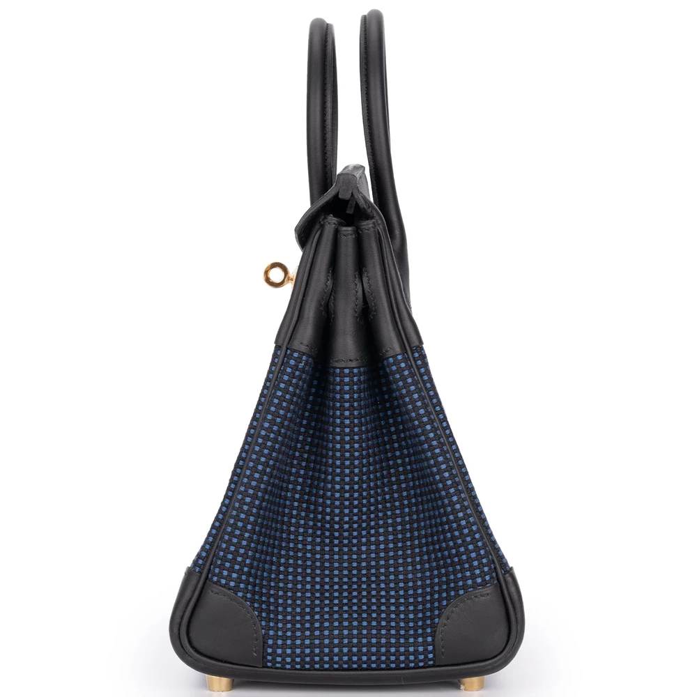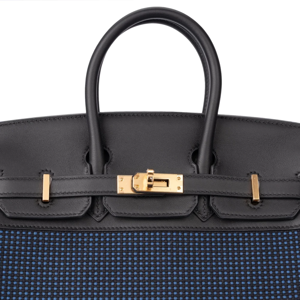 Hermès Birkin 25 Retourne Toile Quadrille/Swift Egee/Noire Gold HW