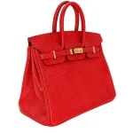 This Hermès style Birkin 25 in Rouge Lizard uses vibrant red lizard leather. The gold hardware makes the color pop even more. The 25cm size is small but bold, perfect for parties. The exotic texture feels luxurious and eye catching. Pair it with black or white outfits for maximum impact. It’s a fiery accessory that shows off your daring side. Luxury doesn’t have to be subtle!