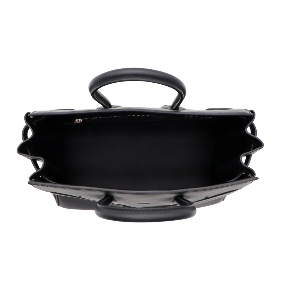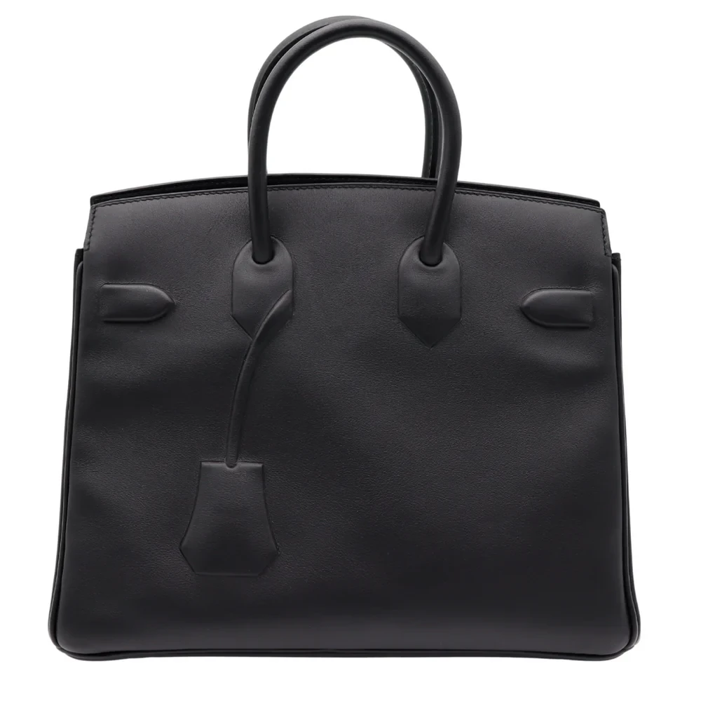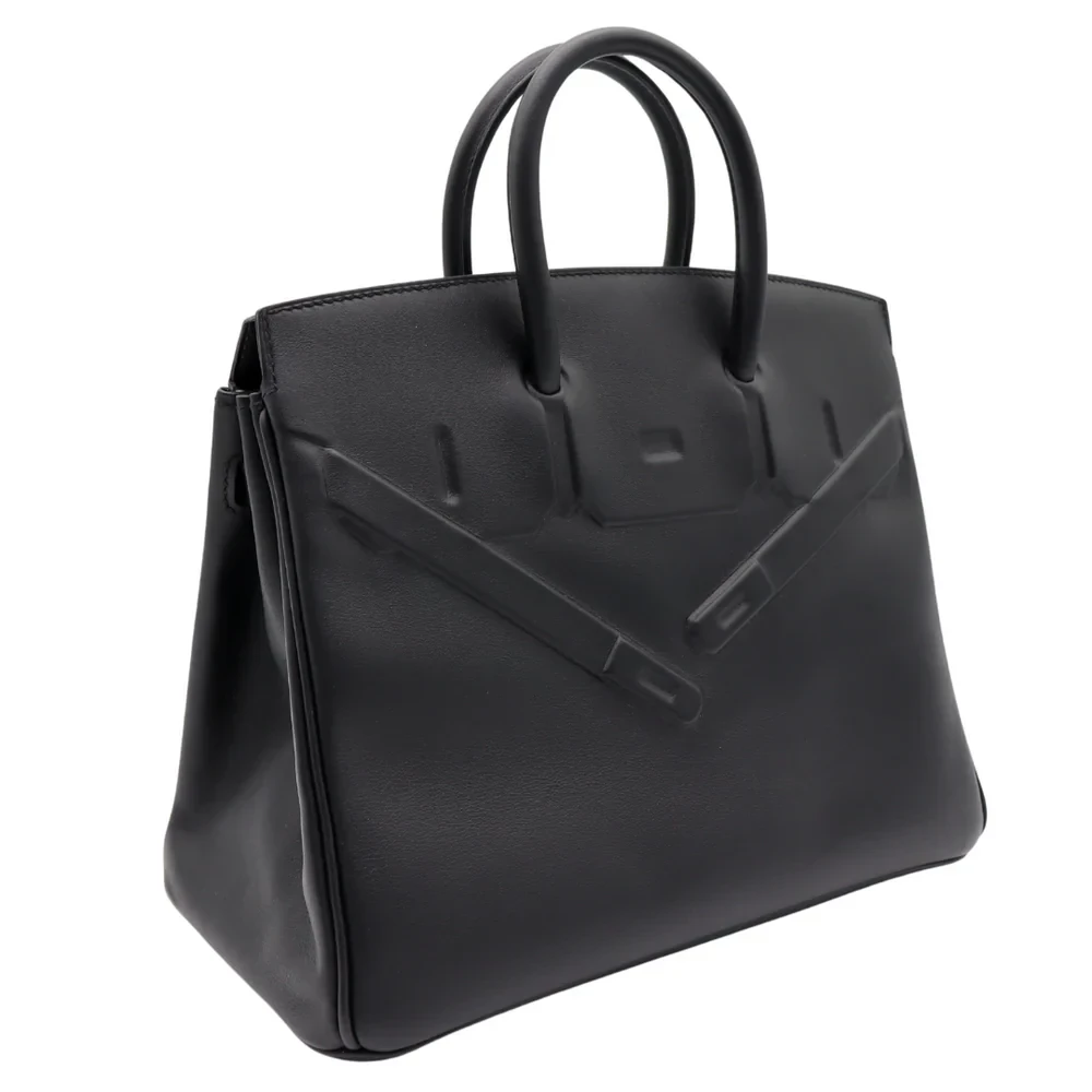 This Hermès inspired Birkin 25 Shadow Black Swift leather offers a sleek, monochromatic finish. The 25cm design skips hardware for minimalist edge. Soft Swift leather resists scratches and stays buttery smooth. Compact yet fits essentials like cards and keys. Pair with all black outfits for stealthy glamour. Lightweight and perfect for urban explorers. Understated luxury for rebels.