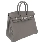 This Hermès Replica Birkin 25 features Gris Meyer Togo leather in cool grey. Palladium hardware keeps the look modern. The 25cm size fits daily essentials comfortably. Togo leather is durable yet soft to touch. Works with every color in your closet. Your perfect minimalist luxury staple. Understated elegance for modern lives.