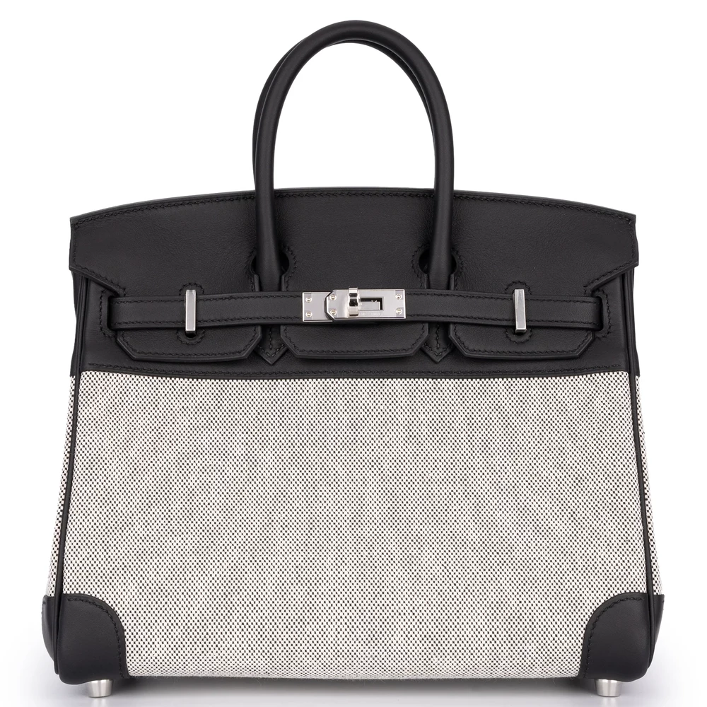 Hermès Birkin 25 Veau Toile Swift Ecru Noir Palladium HW – 1:1 Replica
