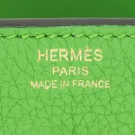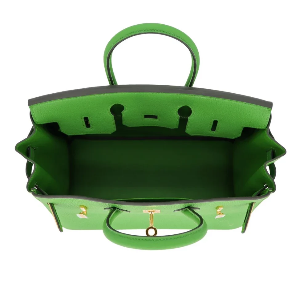 This Hermès inspired Birkin 25 glows in Vert Yucca Togo leather, a fresh leafy green. Gold hardware warms the 25cm silhouette. Soft Togo leather resists scratches and stays supple. Roomy enough for a phone and wallet. Pair with white or denim for spring vibes. Perfect for brunches or park outings. Garden fresh luxury.