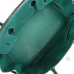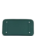 This Hermès inspired Birkin 30 glows in Malachite Togo leather, a deep emerald green shade. Palladium hardware cools the 30cm design with modern contrast. Soft Togo leather resists scratches and ages gracefully. Roomy enough for tablets or gym essentials. Pair with black or metallics for dramatic flair. Office ready or weekend approved. Nature’s luxury reimagined.