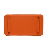 This Hermès style Birkin 35 dazzles in Orange Togo leather, a vibrant citrus hue. Gold hardware amplifies the energetic 35cm design. Soft Togo leather resists scratches and ages gracefully. Roomy enough for laptops, files, or travel gear. Pair with neutrals or prints for playful contrast. Lightweight and perfect for making a statement. Summer sunshine in bag form.