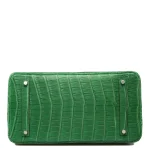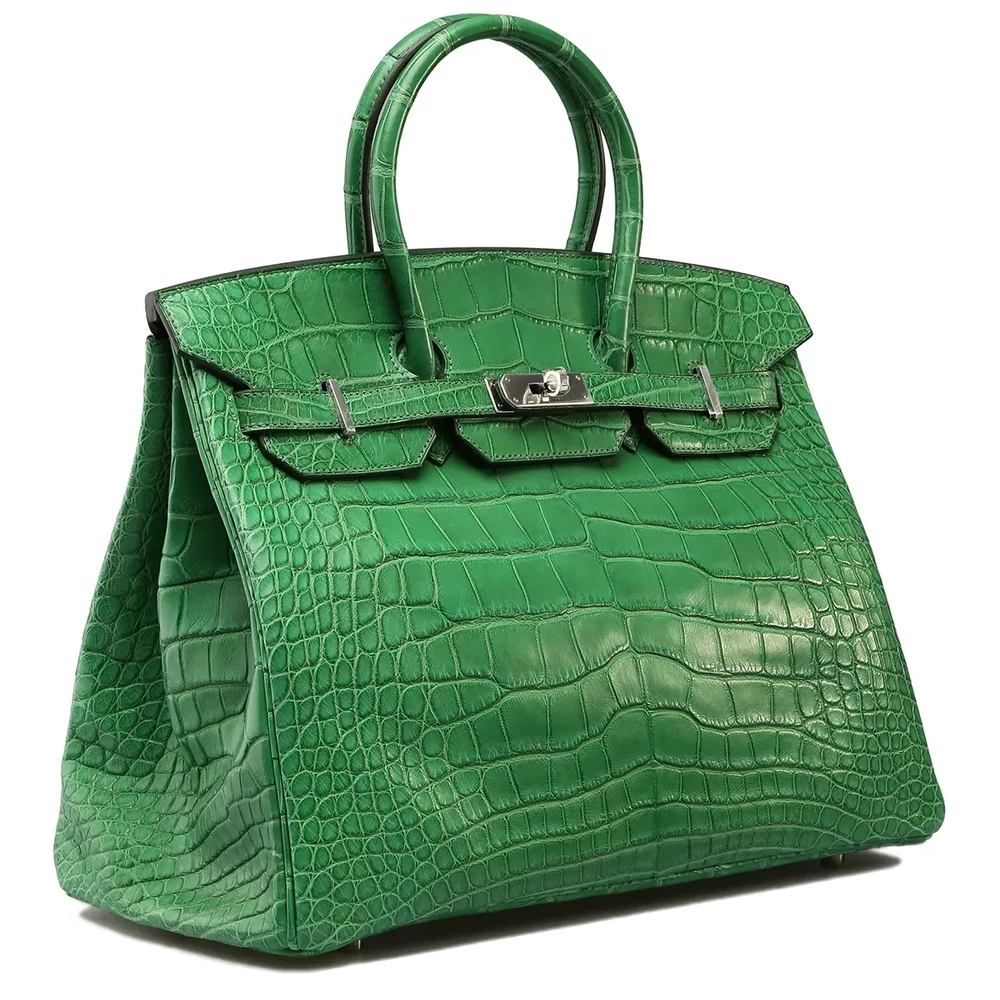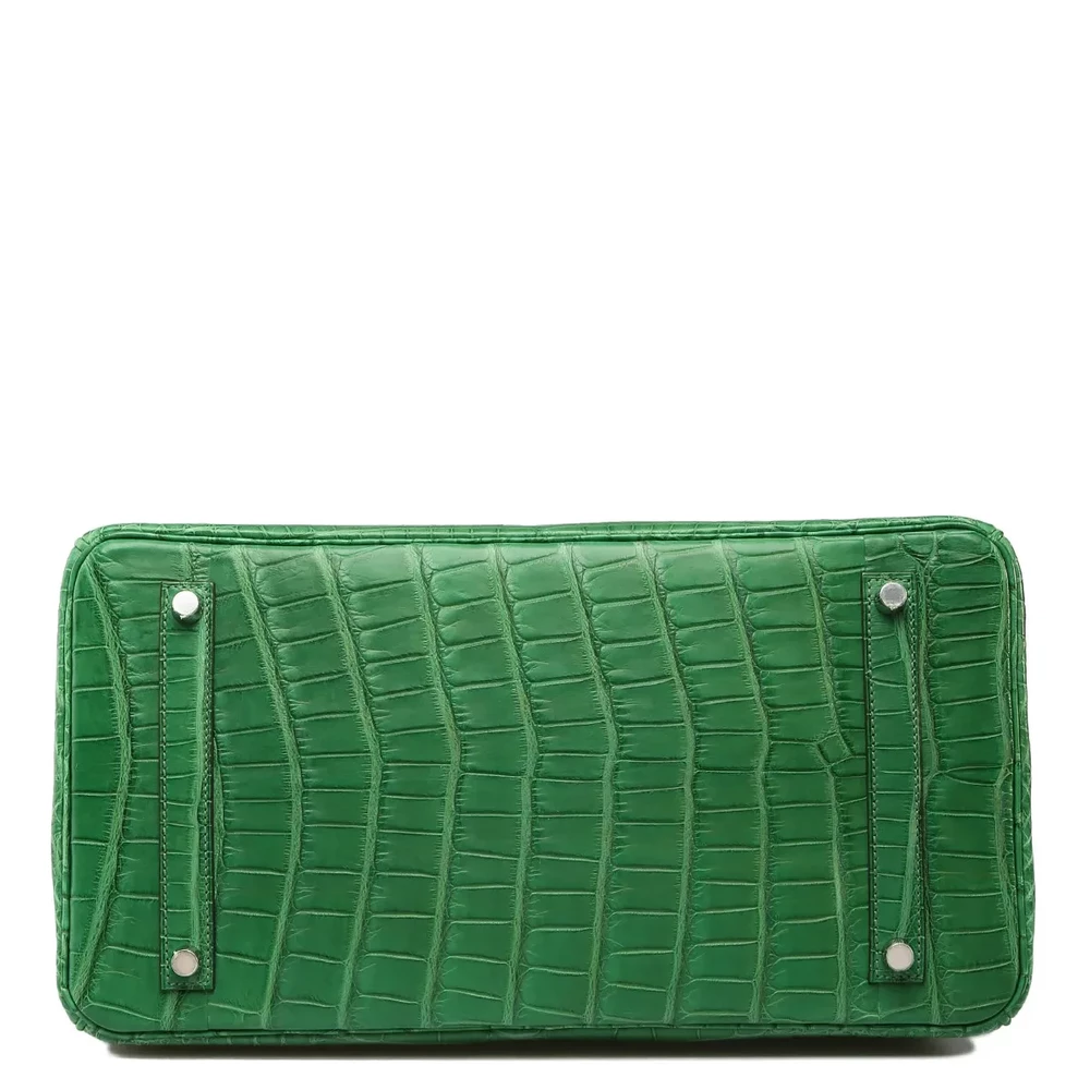 This Hermès Replica Birkin 35 features Cactus matte alligator in fresh green. Gold hardware adds warm contrast. The 35cm size makes a statement. Matte finish resists scratches. Pops against neutral colors. Your perfect bold luxury companion. Nature inspired elegance.