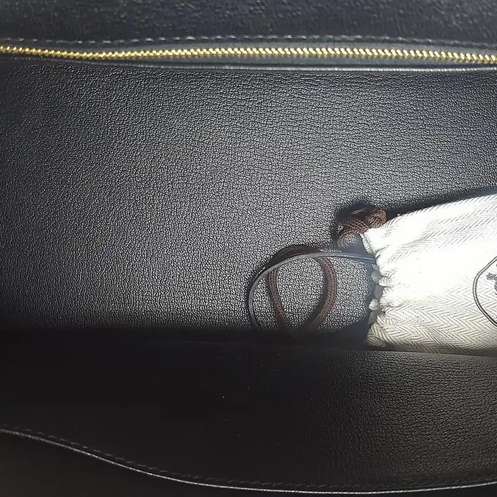 This Hermès inspired Birkin 30 Touch layers Black Togo leather with glossy Niloticus crocodile for monochrome drama. Gold hardware elevates the slouchy, spacious silhouette. The 30cm size fits laptops, scarves, and travel gear. Togo and croc resist wear while staying luxe. Pair with metallics or red accents for bold contrast. Built for power meetings or luxury errands. Shadow and shine.