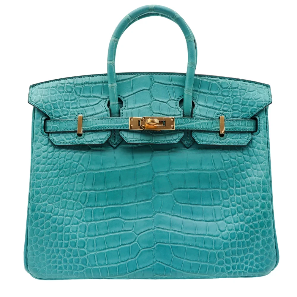 High-End Hermès Inspired – Birkin 25 Bleu Paon Matte Alligator Gold HW