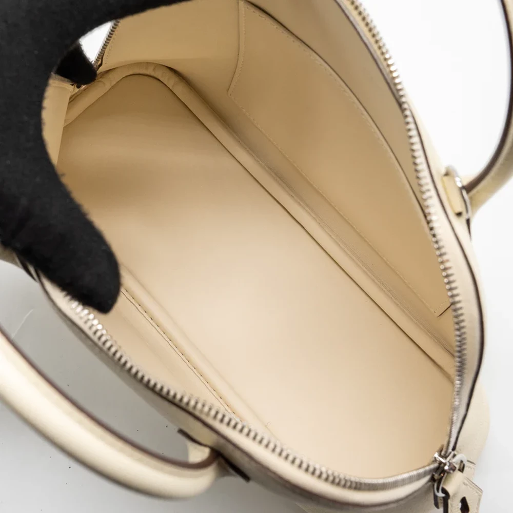 This Hermès Bolide 1923 25 in Epsom leather and Nata with Bleu Indigo and Lime accents and silver hardware offers a playful yet refined design. The light neutral leather is paired with vibrant accents, adding a pop of color to the structured silhouette. Perfect for those who love bold colors and luxurious details, this bag is as practical as it is stylish.