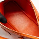 This Hermès Bolide 27 in Epsom leather in Orange with Silver Hardware stamp X offers a bold and vibrant design. The bright Orange color, paired with the structured Epsom leather, creates an eye catching and contemporary look. Silver hardware completes the bag with a modern touch, making it a statement piece.