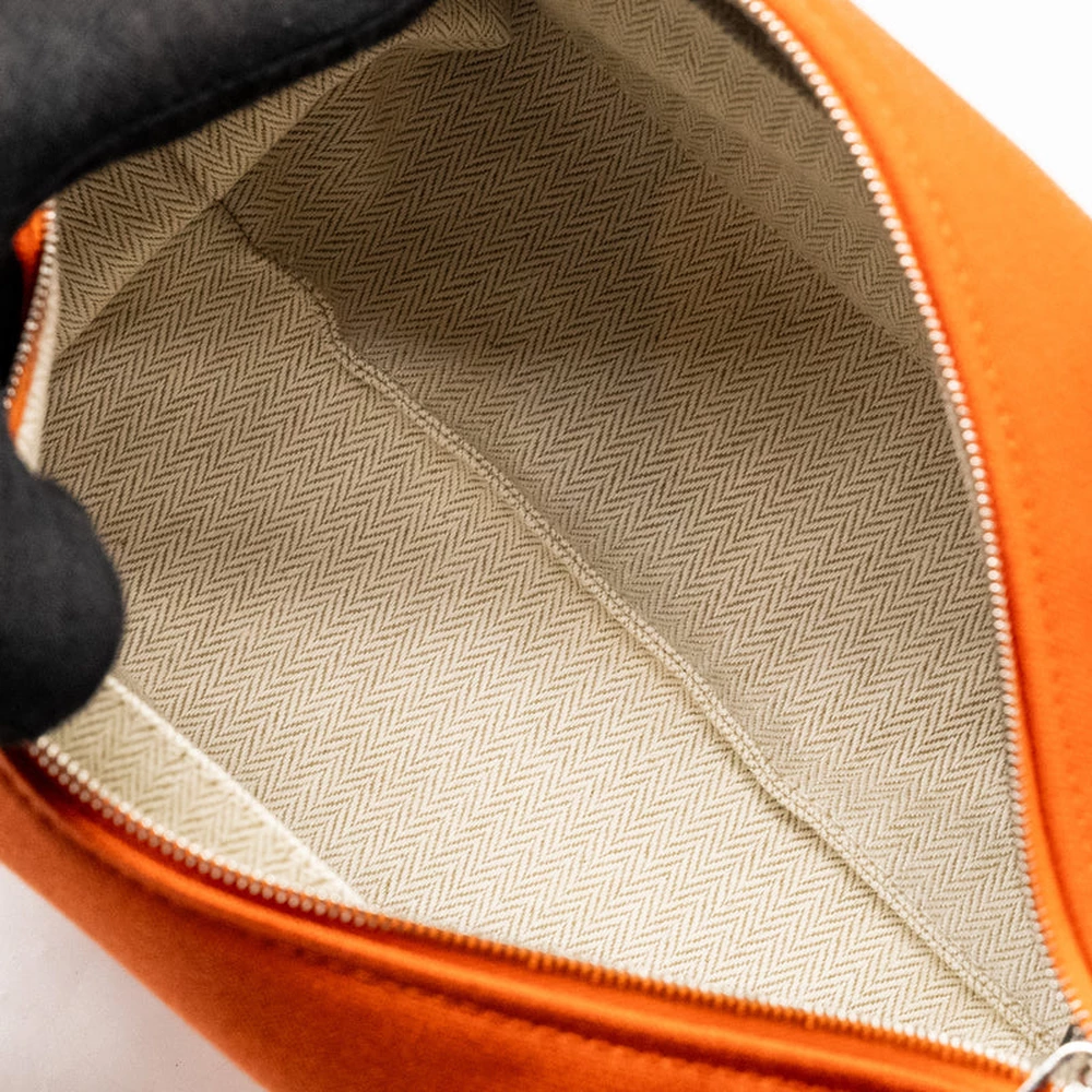 This Hermès Trousse de Toilette Bride à Brac PM in Orange with Silver Hardware is an elegant yet practical toiletry bag. Crafted from durable materials, this bag boasts a striking Orange color, making it a standout piece for travel or daily use. The compact size and thoughtfully designed compartments provide ample space for your grooming essentials while maintaining a sleek, minimalistic appearance. The Silver Hardware adds a polished, contemporary touch, ensuring this accessory is both functional and fashionable. Whether used for toiletries or as an everyday carry all, this Hermès Trousse de Toilette is a perfect balance of style and utility.