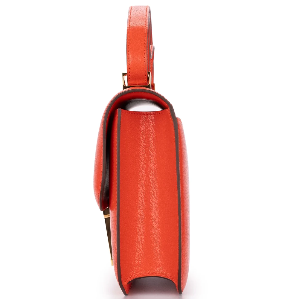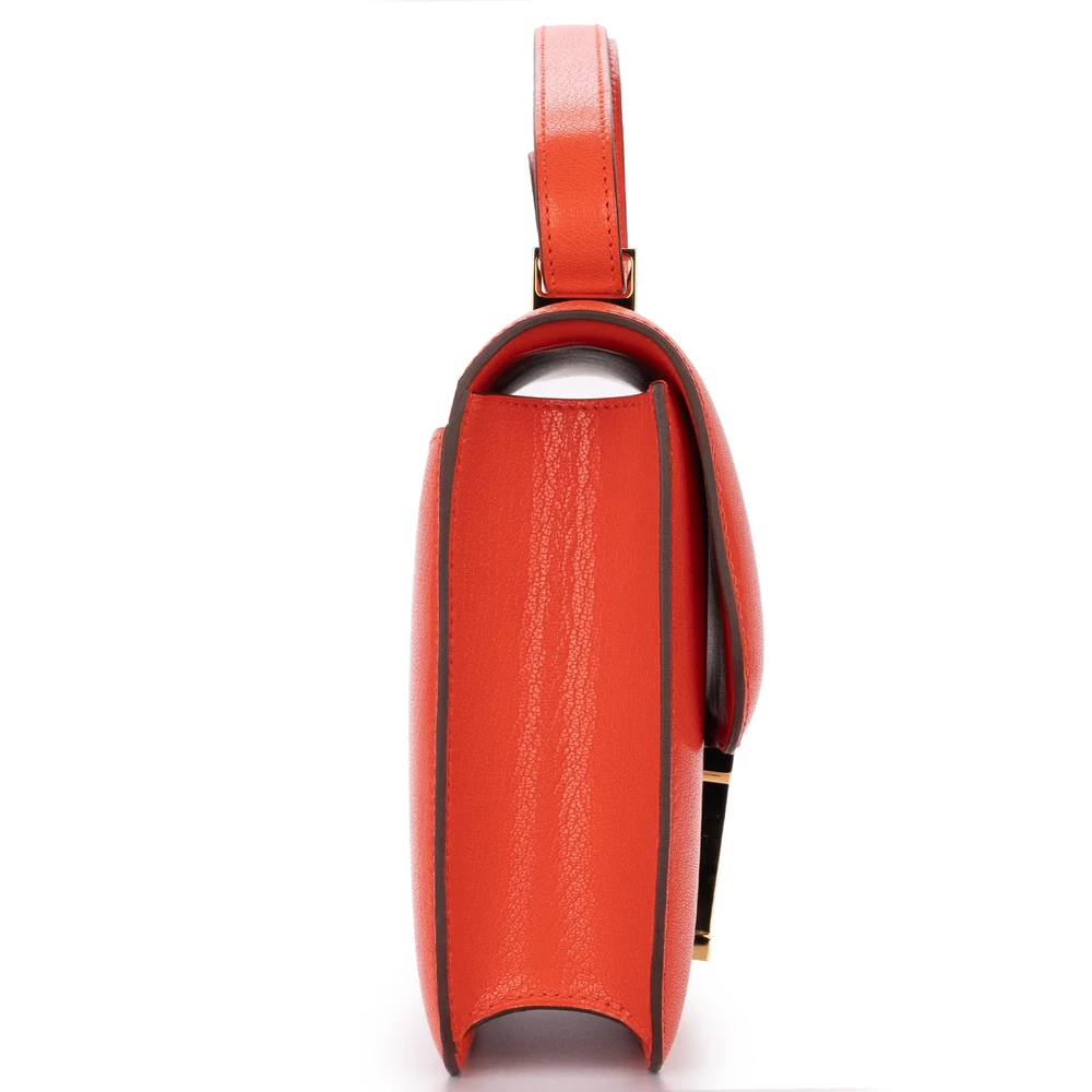 This Hermès inspired Constance 24 dazzles in Chamkila Chèvre Capucine (poppy red) leather. Gold hardware accents the structured silhouette and H clasp. The 24cm size fits tablets, wallets, and essentials. Chèvre leather stays lightweight and scratch resistant. Style with black suits or neutrals for fiery contrast. Perfect for parties, work, or luxury errands. Passion perfected.