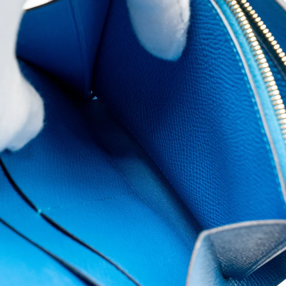 This Hermès Constance Compact Wallet in Epsom leather in Blue with Gold Hardware stamp A offers a refined and elegant design. The soothing Blue color, paired with luxurious Epsom leather, creates a compact wallet that is perfect for organizing your essentials.