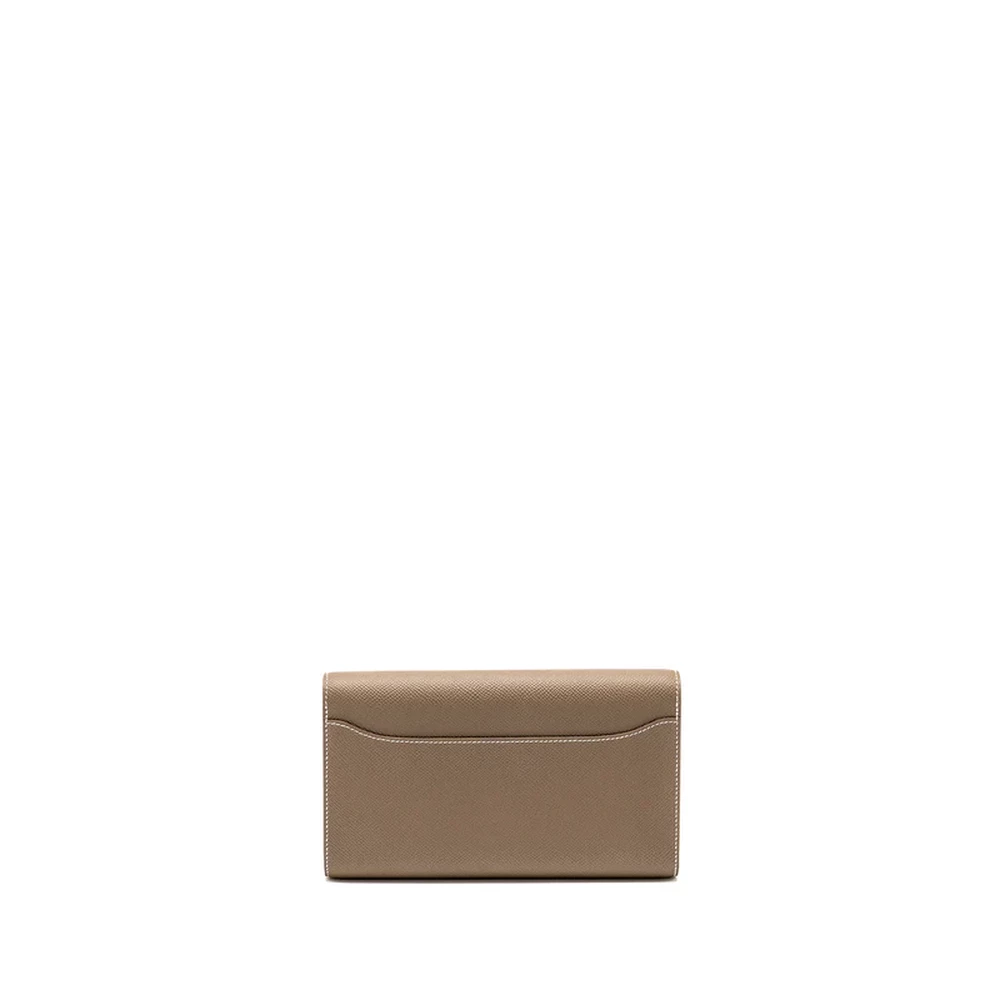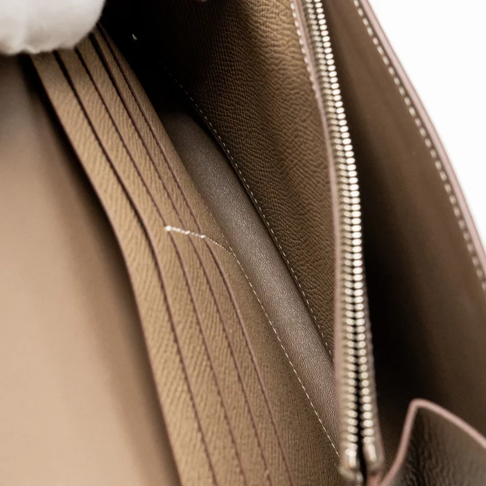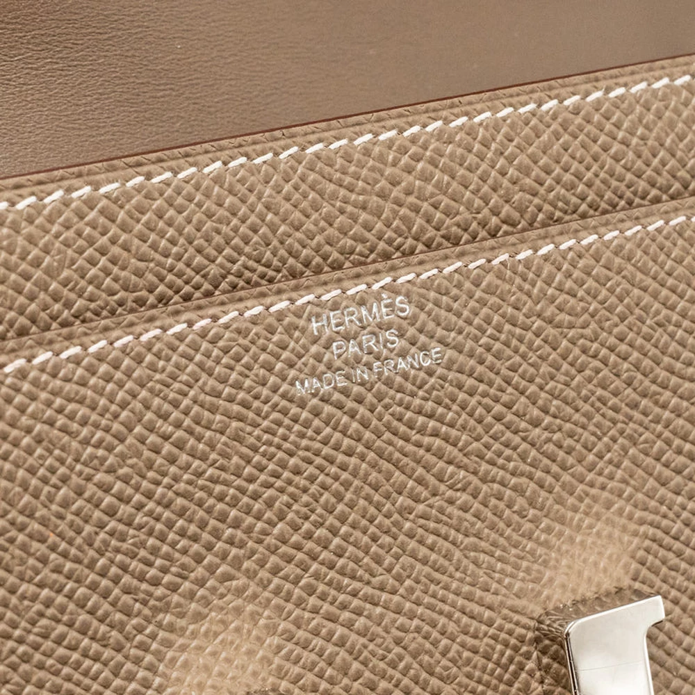 This Hermès Constance To Go in Epsom leather and Etoupe with Silver Hardware stamp U combines sleek minimalism with luxury. The subtle Etoupe color pairs perfectly with the smooth texture of the Epsom leather, while the silver hardware adds a touch of modern elegance. Compact and practical, this bag offers a sophisticated way to carry essentials.