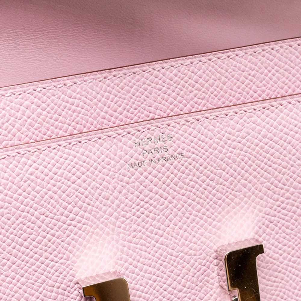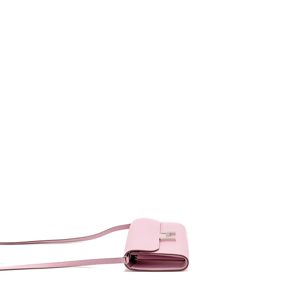 This Hermès Constance to Go in Epsom leather in Mauve Sylvestre with Silver Hardware stamp U is a compact and chic piece. The soft Mauve Sylvestre color, combined with the textured Epsom leather, offers a subtle elegance, while the silver hardware adds a modern edge to this refined design.