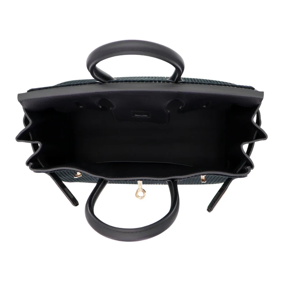 This Hermès like Birkin 25 uses textured black Swift leather with gold accents. The unique Cote à Cote pattern adds depth and style. The 25cm size is compact but holds essentials like your phone and cards. The gold hardware glows against the dark leather. Perfect for adding edge to casual or dressy outfits. Scratch resistant and easy to clean. A sleek bag for modern minimalists.