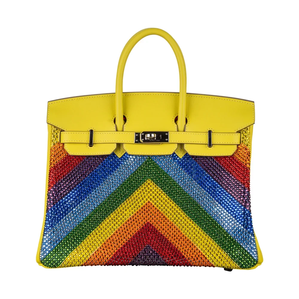 1:1 Hermès Replica – Birkin 25 Customized Rainbow Chevron Swarovski Crystal Palladium HW