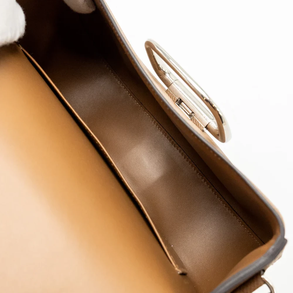 This Hermès Della Cavalleria Elan in Epsom leather and Ala with silver hardware offers a refined and elegant design. The smooth Epsom leather and sleek silver hardware create a sophisticated aesthetic that’s perfect for both day to day use and special occasions. Its functional size and stylish design make it a versatile addition to any collection.