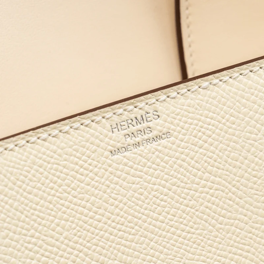 This Hermès Della Cavalleria Mini Bag in Epsom leather and Nata with Silver Hardware stamp U is a refined and compact accessory. The soft Nata color, combined with the luxurious texture of Epsom leather, is perfectly complemented by the silver hardware. The minimalist design makes it a versatile and elegant choice for any occasion.