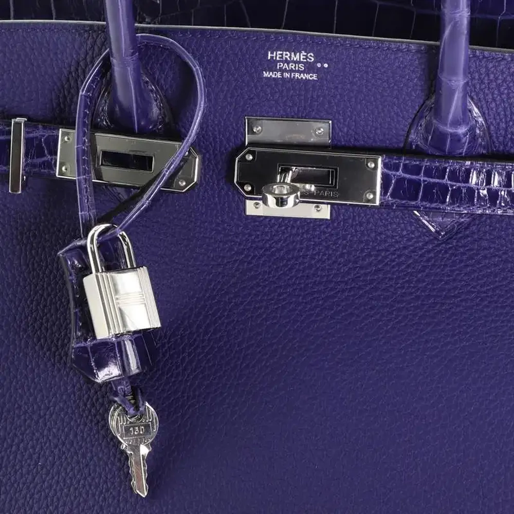 Hermès Birkin Touch Bleu Encre Togo/Niloticus Crocodile Palladium HW – 1:1 Replica