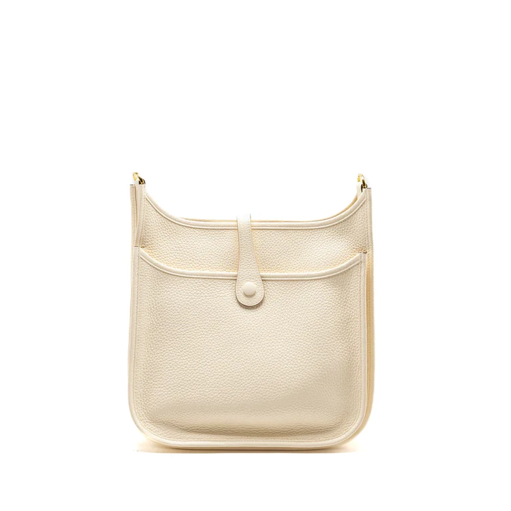 This Hermès Evelyne 29 in Clemence leather in Nata with Gold Hardware stamp Z offers a minimalist yet luxurious design. The soft Nata color is complemented by the textured Clemence leather, creating a clean and elegant look. Gold hardware adds a touch of sophistication, making it an ideal choice for both casual and formal wear.