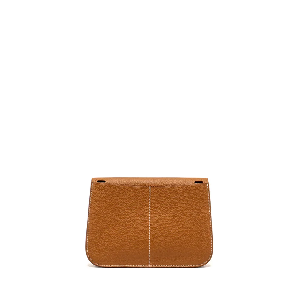 This Hermès Halzan 25 in Clemence leather and Gold with gold hardware combines classic style with luxurious appeal. The rich gold leather paired with the warm gold hardware creates a sophisticated, elegant look. The compact size and practical structure make it a versatile option for both casual and formal settings.