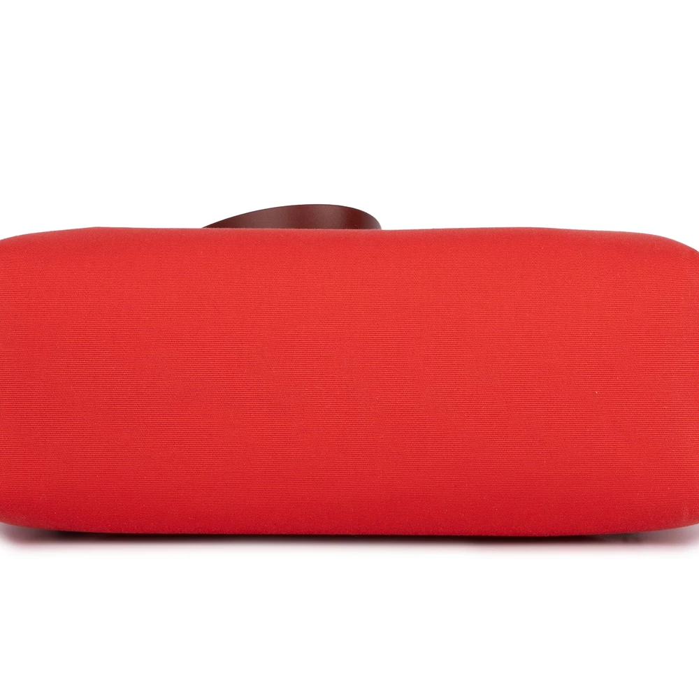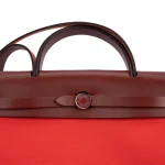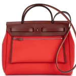 This Hermès Herbag Zip 31 combines Rouge H (deep red) canvas with Bougainville leather accents. Palladium hardware enhances the functional design. The 31cm size fits laptops, notebooks, and daily gear. Canvas is durable and easy to clean. Wear with denim or casual outfits for rustic charm. Perfect for travel or weekend adventures. Rugged and refined.