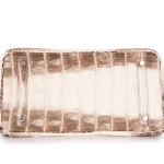 This Hermès Birkin 30 features rare Himalayan Blanc (white) Niloticus crocodile leather. Palladium hardware complements the icy, exotic texture. The 30cm size fits laptops, cosmetics, and travel essentials. Crocodile leather is glossy and durable. Style with metallics or monochromes for Arctic elegance. Built for galas or collector’s displays. Frosted opulence.