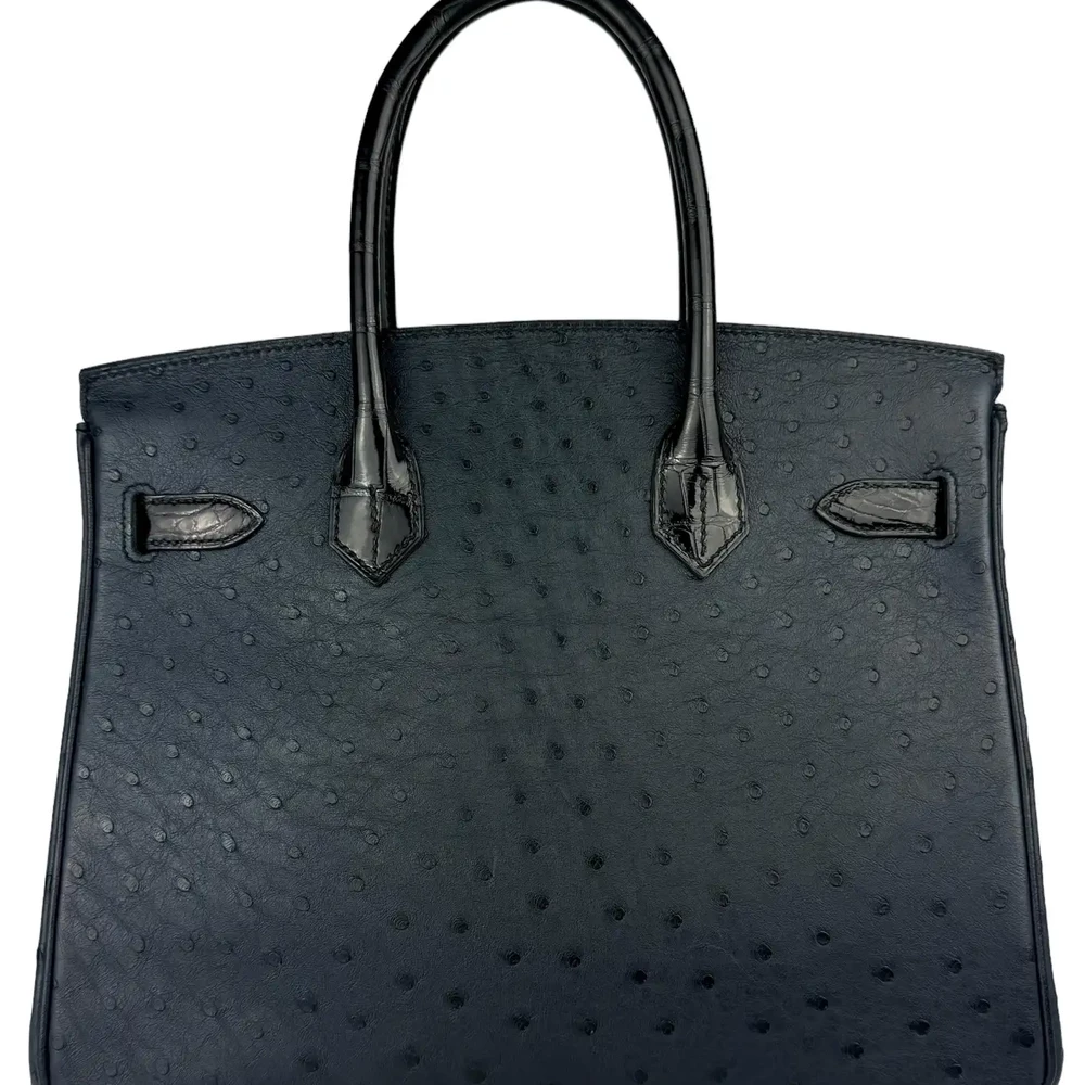 Hermès Birkin 30 Touch Blue Indigo Ostrich/Black Crocodile Palladium HW – Best Replica