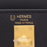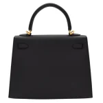 This Hermès Inspired Kelly 25 combines Black and Gold Epsom leather. Brushed gold hardware adds subtle shine. The sellier style maintains perfect structure. Durable leather resists daily wear. Elevates professional attire instantly. Your perfect power bag for executives. Luxurious authority in every detail.