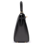 This Hermès inspired Kelly 25 Sellier features Epsom Veau Noir (black) leather for sleek minimalism. Gold hardware highlights the sharp Sellier stitching and clasp. The 25cm size fits tablets, wallets, and essentials. Epsom leather stays scratch free and structured. Style with tailored suits or evening wear for timeless contrast. Perfect for offices or galas. Polished power.